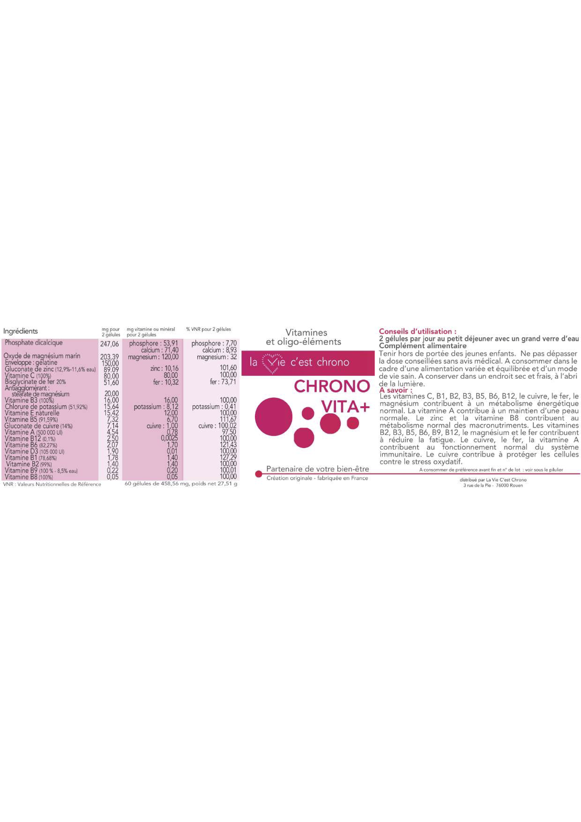 Chrono Vita+ est un complément qui permet au corps de ne pas manquer de vitamines au cours de la perte de poids et de volume et de ne pas générer de fatigue.